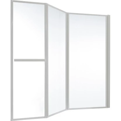 Der 3-teilige, großzügige Badewannenaufsatz Mela I bietet mit einer Abmessung von 140 cm x 166,4 cm optimalen Spritzschutz. Die einzelnen Elemente haben eine Abmessung von 68,4 cm – 54 cm – 44 cm. Das klare 4 mm Sicherheitsglas und die weißen Aluminiumprofile werten Ihr Bad auf. Die einzelnen Elemente lassen sich platzsparend und unauffällig zusammenklappen. Dank des praktischen Handtuchhalters ist Ihr Duschtuch immer in greifbarer Nähe. Der Badewannenaufsatz ist beidseitig montierbar. Im Lieferumfang ist das Montagematerial enthalten.