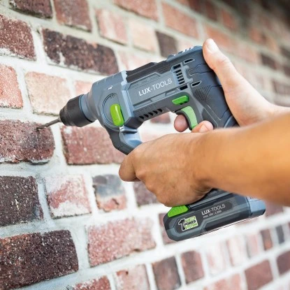 Der LUX-TOOLS Akku-Bohrhammer A-BH-20 überzeugt mit gleich drei Funktionen: Schrauben, Bohren und Schlagbohren. Der Akku-Betrieb bietet Ihnen viel Bewegungsfreiheit und Flexibilität, da kein störendes Stromkabel vorhanden ist und Sie unabhängig einer Stromquelle arbeiten können. Damit bietet der Akkubohrer Ihnen vielseitige Einsatzmöglichkeiten beim Hand-, Heim- und Hobbywerken.
