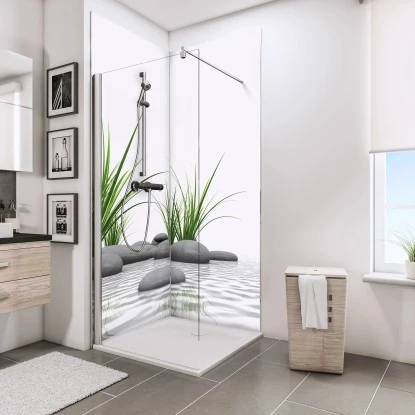 Schulte ExpressPlus DecoDesign Duschrückwand Foto über Eck Zen-Steine 210x90x90c